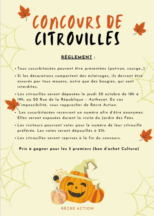 Récré Action organise une soirée Halloween pour les enfants, le vendredi 31 octobre, de 18h30 à 20h30, au Jardin des Fées de Mme Limagne, à Authezat.