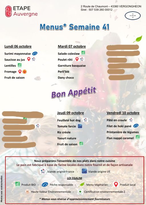 Lors de l'inscription à la cantine scolaire de votre enfant, nous vous demandons chaque année, ses jours d'inscription à la cantine.